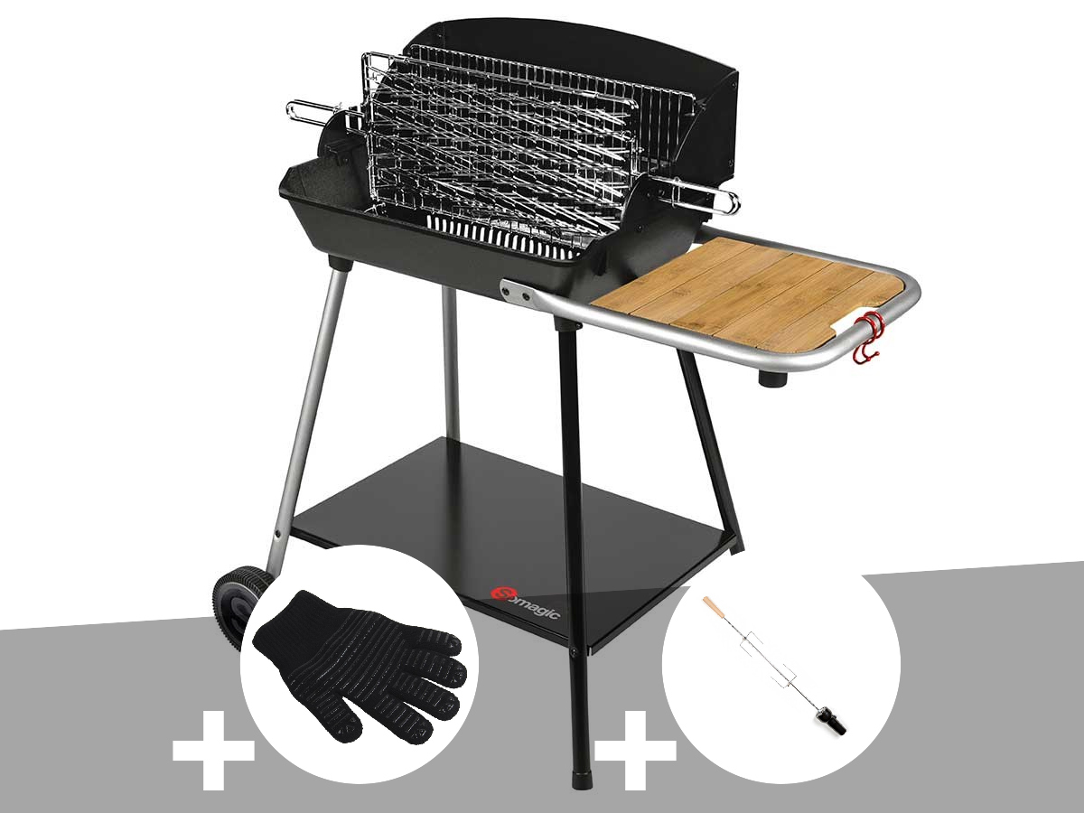 Barbecue horizontal et vertical excel grill + gant de protection + kit tournebro