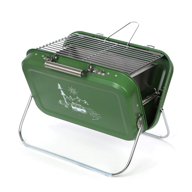 - Ce barbecue est déjà prêt à l'emploi : il est livré avec une grille ainsi qu'un bac pour le charbon. Il suffit d'ouvrir la mallette pour déplier le barbecue : il est prêt à rassembler les gourmands et accueillir les grillades !