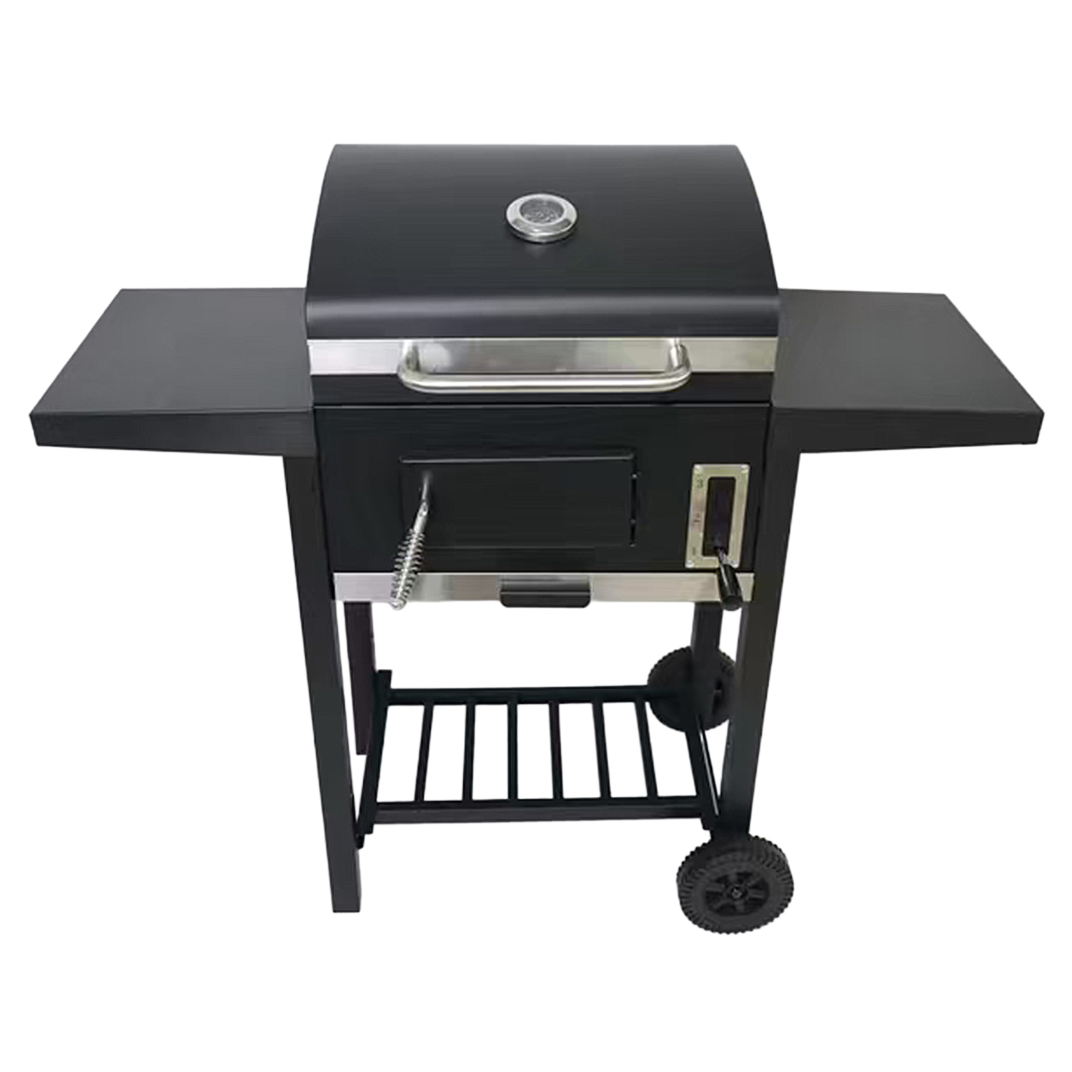 • Conception pensée pour une utilisation en extérieur, elle dispose d'un plateau à charbon à hauteur réglable par levier, d'un tiroir à cendres amovible et d'une entrée centrale depuis laquelle vous pourrez accéder aux braises en toute facilité à tout moment.