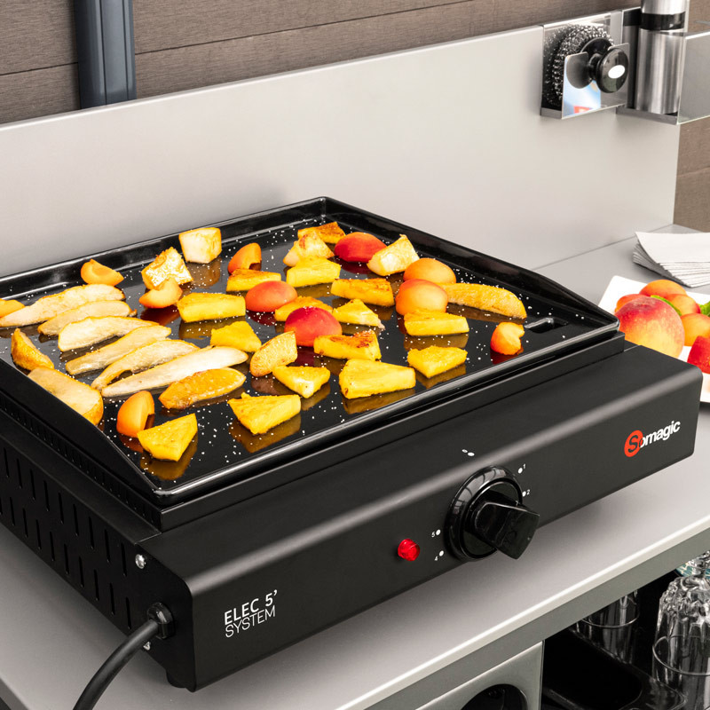 Profitez d'un appareil de cuisson qui soit à la fois efficace et élégant pour préparer de bons petits plats de l'été directement sur votre terrasse. La plancha électrique Somagic est à poser sur votre table en toute sécurité, ce qui vous permet de rester avec vos invités tout en faisant cuire vos aliments, viandes, poissons ou légumes de l'été. Vous pourrez accueillir jusqu'à 8 personnes avec la capacité de la plaque de cuisson, conçue en fonte émaillée pour favoriser une cuisson optimale des aliments. Cette plancha électrique comporte un récupérateur de graisse amovible qui facilite le nettoyage après utilisation. Préparez vos grillades en toute simplicité grâce à cette plancha en fonte OLIANA !