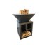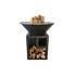 Ce brasero au feu de bois possède également un meuble avec étagère pour ranger le bois et l'avoir à disposition à tout moment.