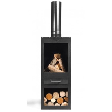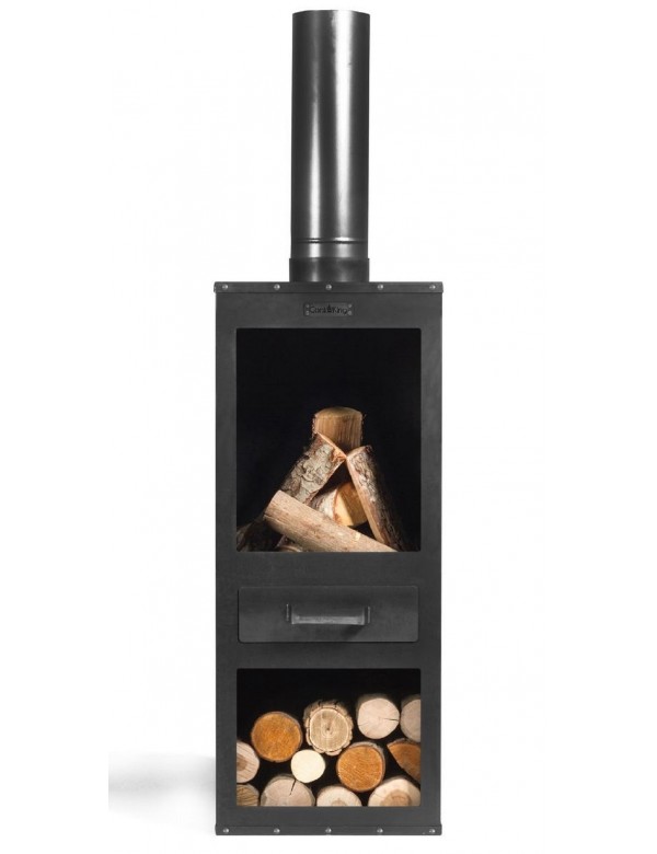 Cette cheminée de jardin de haute qualité avec une belle finition et fabriquée à la main; lui donne un design contemporain et tendance ; elle comporte un bac à cendre et au-dessous un range-bûches