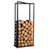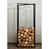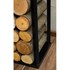 Le range-bûches est constitué de profilés en acier enduit de poudre en noir et maille d’acier qui le rend plus résistant aux intempéries.