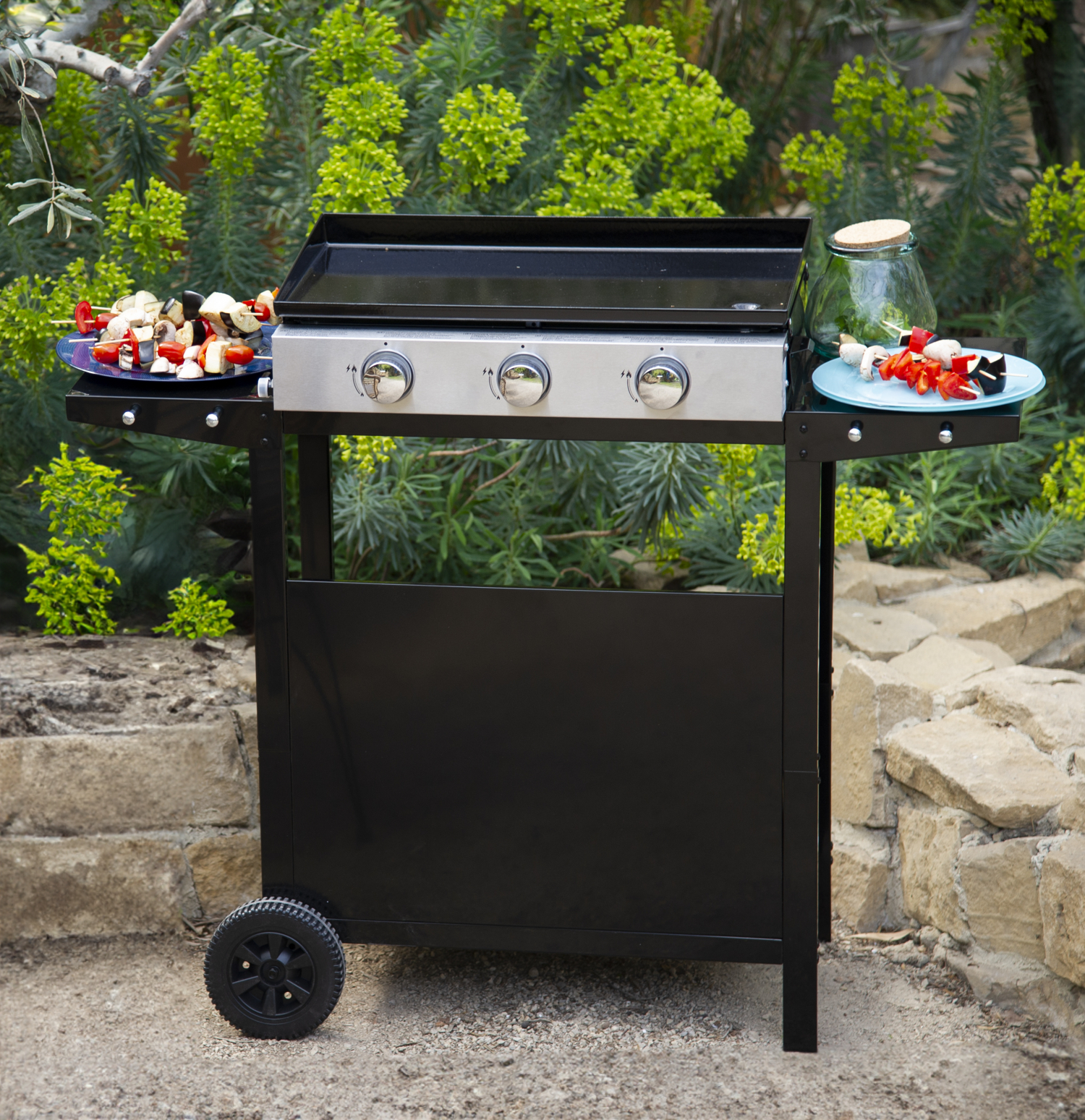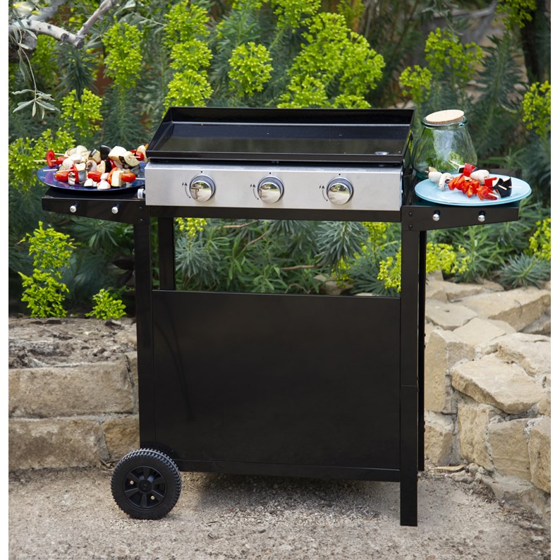 Plancha au gaz mérida 3 brûleurs + chariot