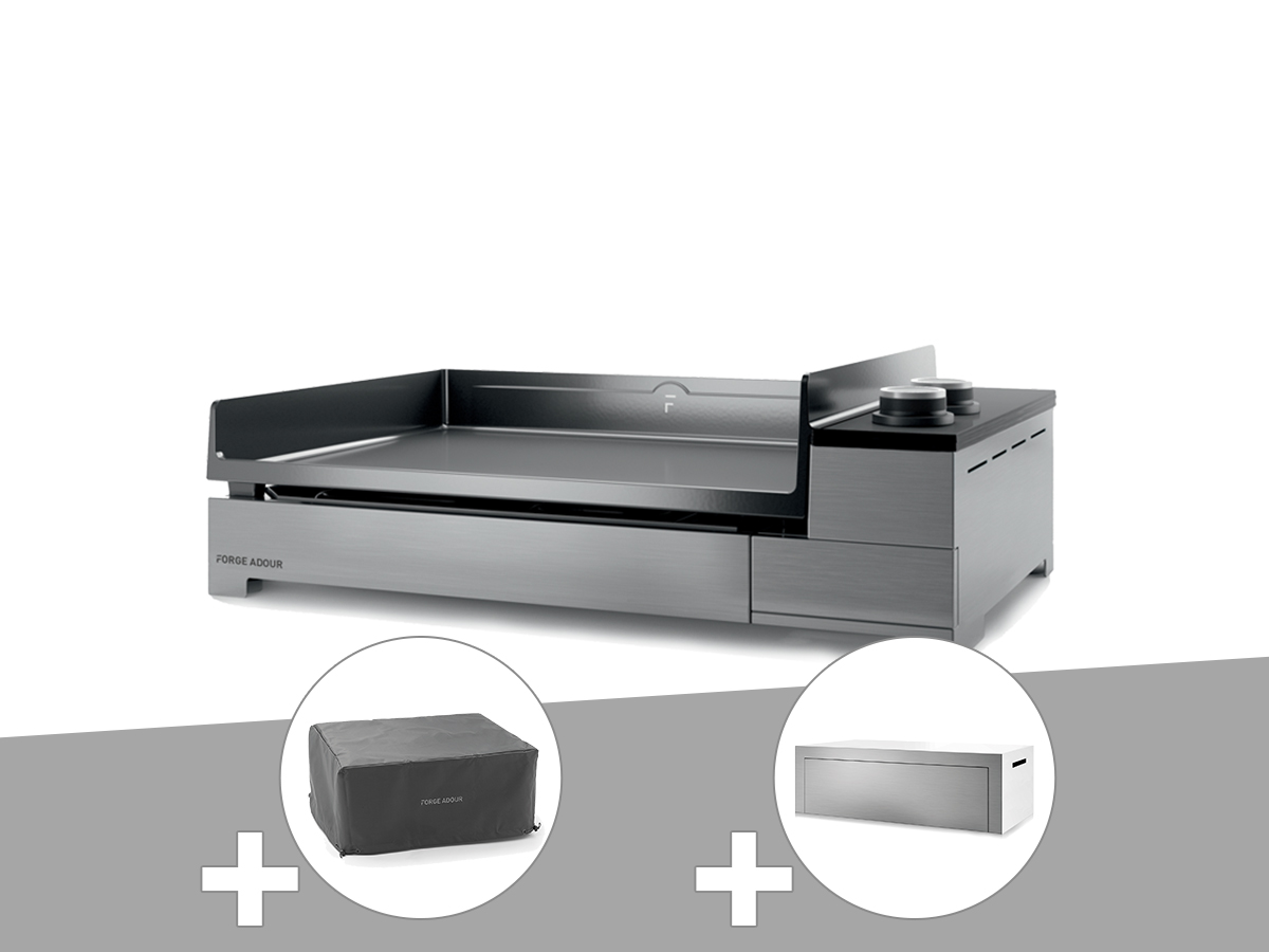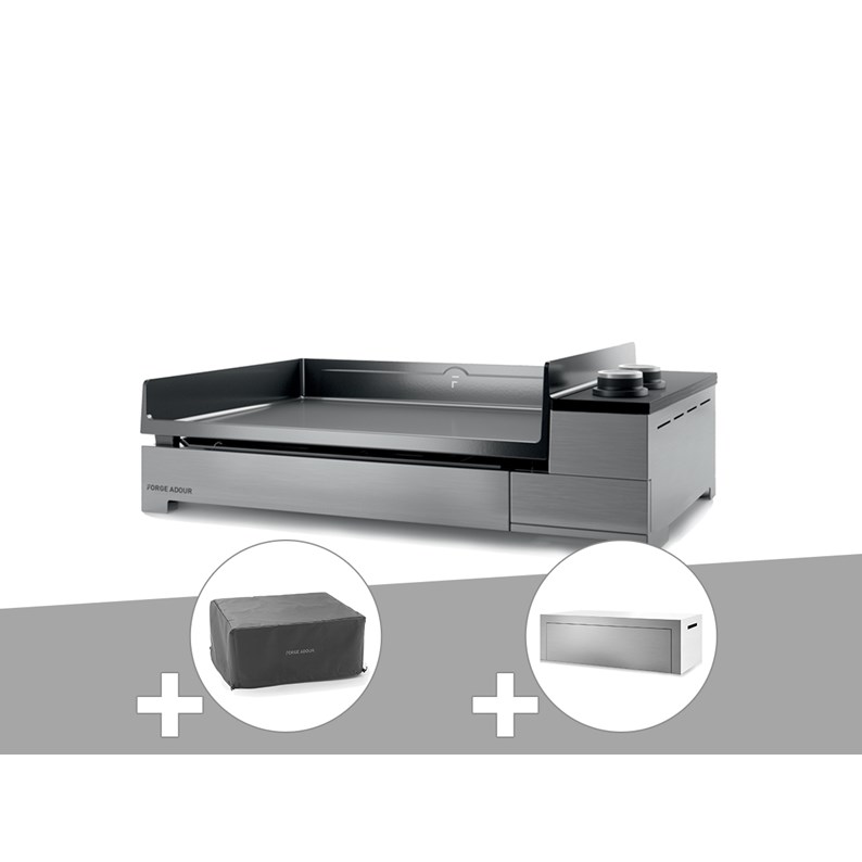 Plancha électrique premium 60 inox avec housse et couvercle - forge adour