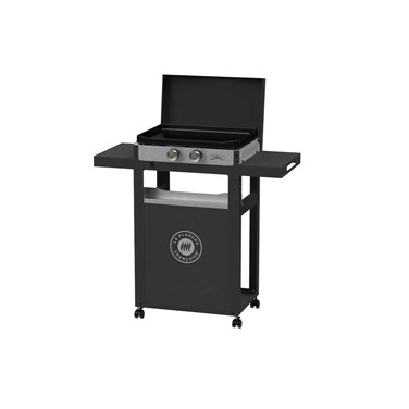 Sa plaque en fonte émaillée de 50x35 cm assure une inertie thermique optimale, tandis que ses deux brûleurs inox trompette de 4 kW garantissent une répartition homogène de la chaleur. Le nettoyage est facile grâce au trou d'évacuation et au récupérateur inox latéral. Les deux tablettes latérales modulables et le couvercle convertible en crédence offrent un espace de travail pratique, et les 4 roulettes directionnelles autobloquantes assurent mobilité et stabilité.