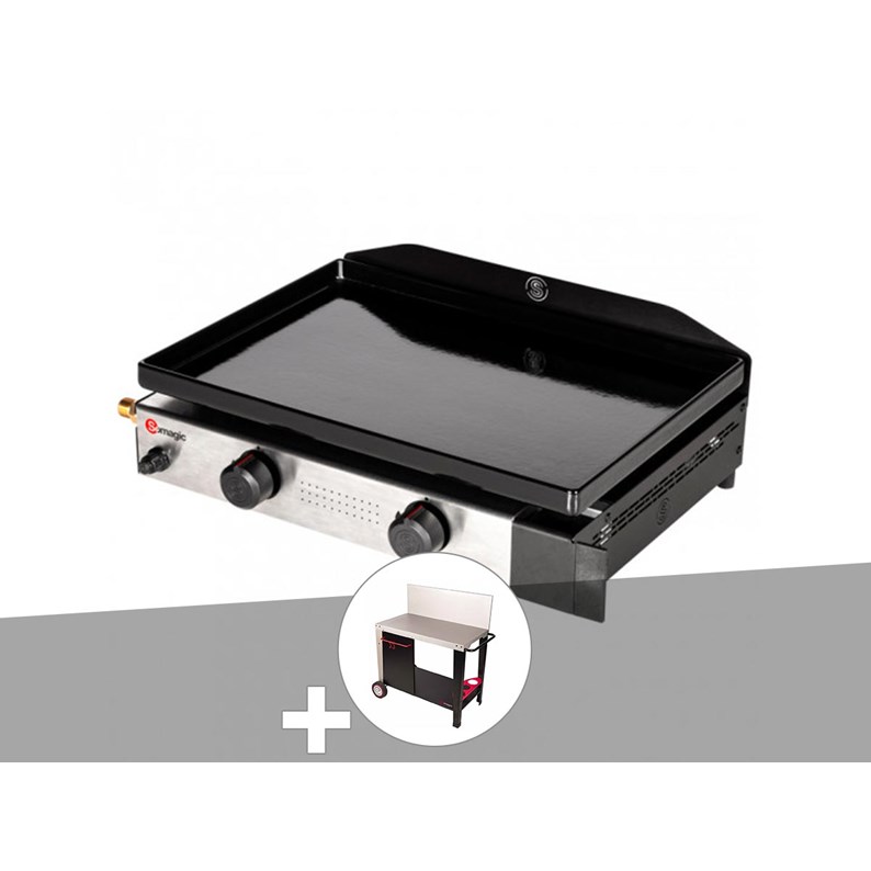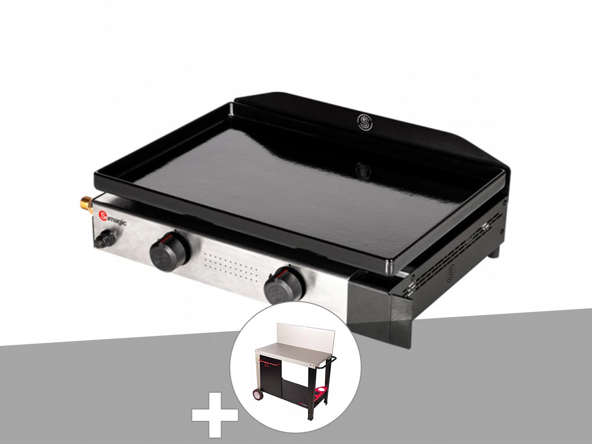 Plancha gaz à poser 2 brûleurs solia 200 - somagic + chariot plancha en métal sa