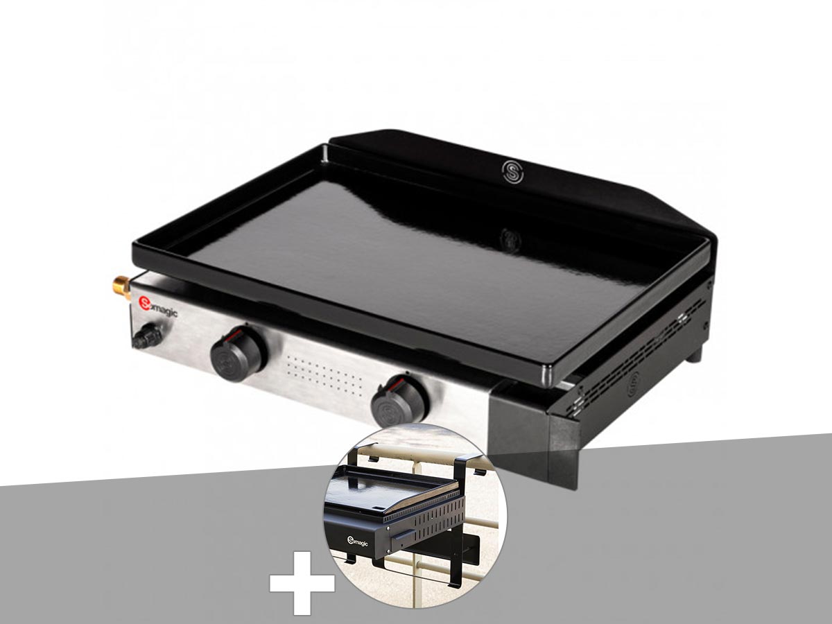 Plancha gaz à poser 2 brûleurs solia 200 - somagic + support balcon