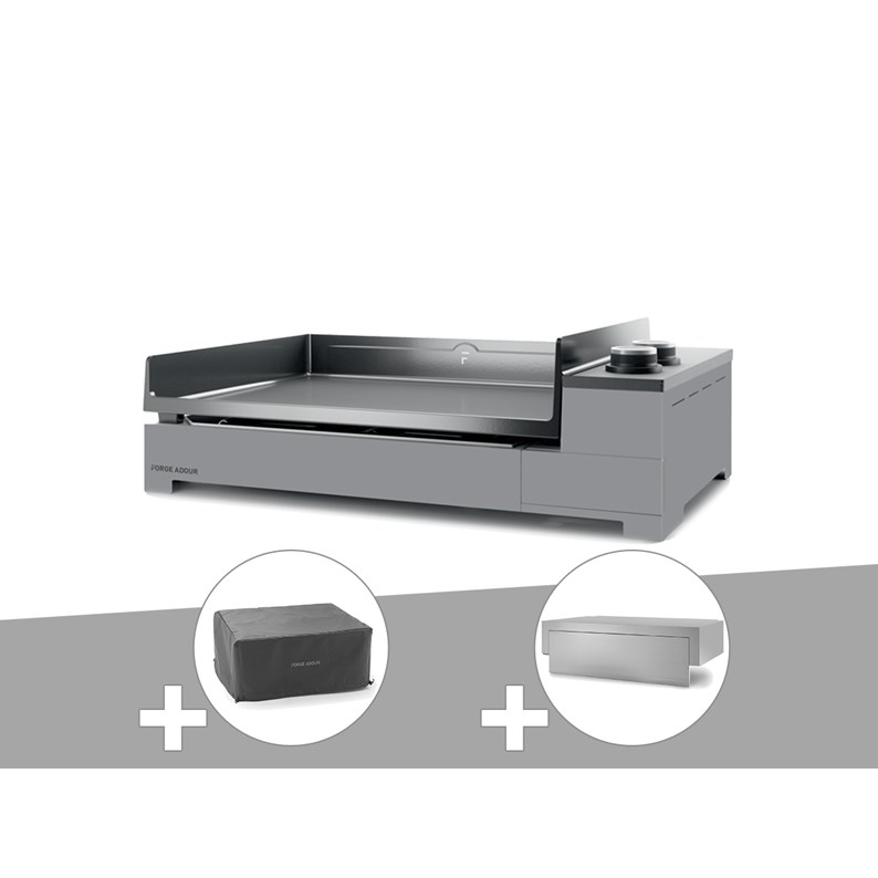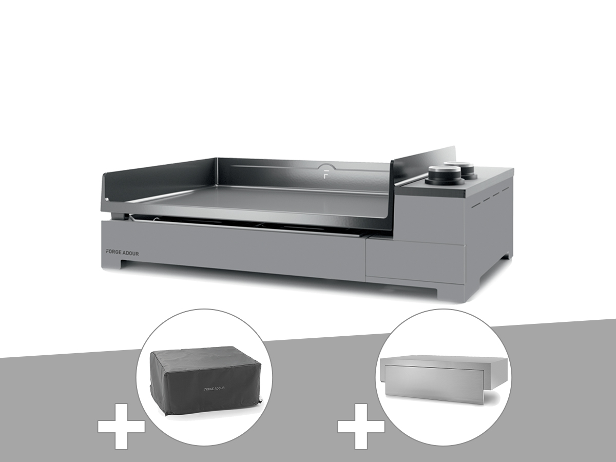 Plancha gaz premium 60 acier avec housse et couvercle pour plancha - forge adour