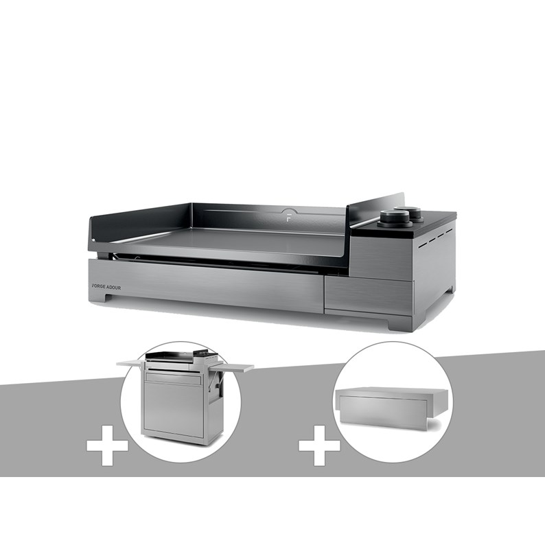 Plancha gaz premium 60 inox avec chariot et couvercle - forge adour