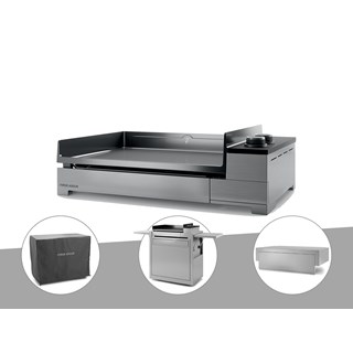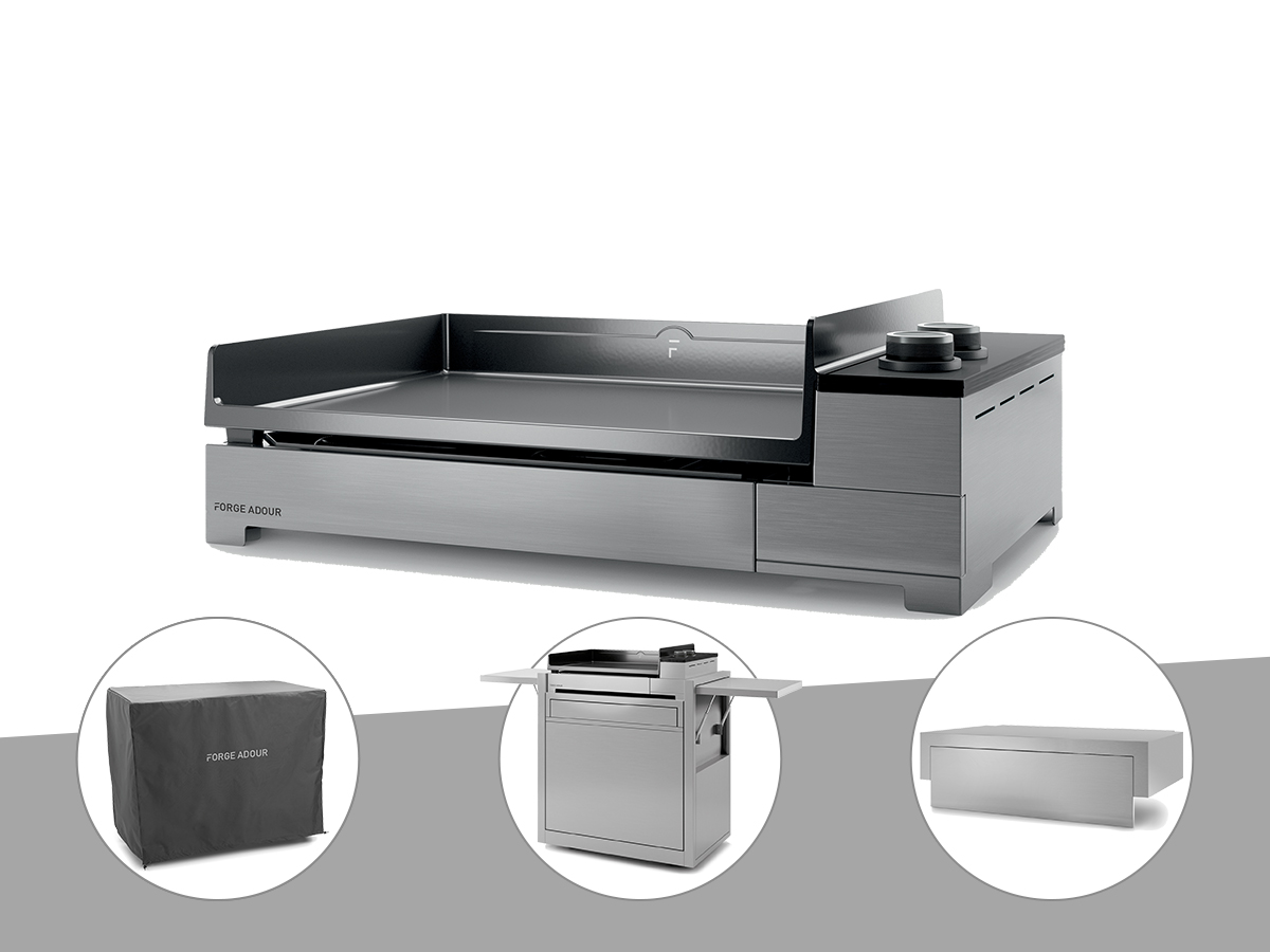 Plancha gaz premium 60 inox avec couvercle, chariot et housse - forge adour