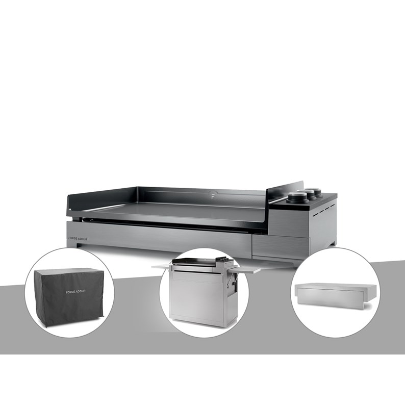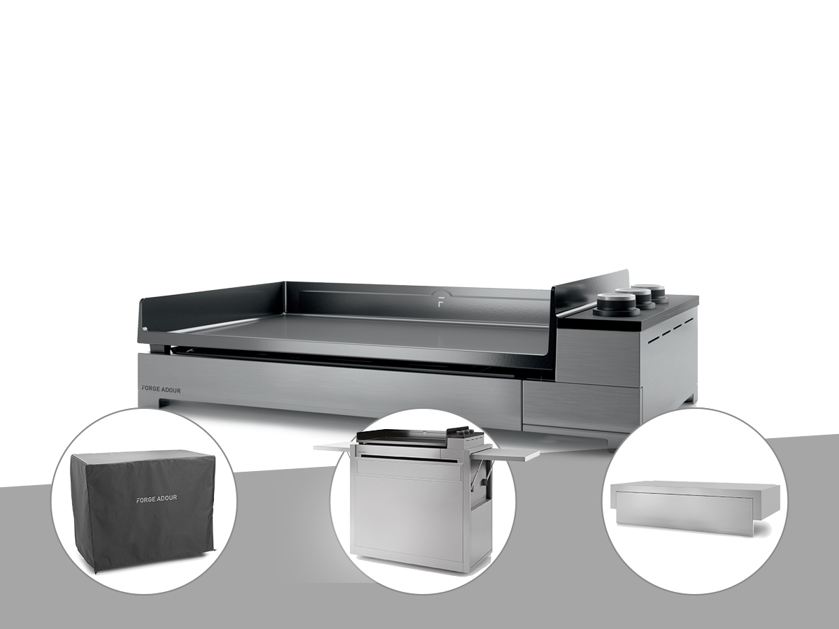 Plancha gaz premium 75 inox avec couvercle, chariot et housse - forge adour