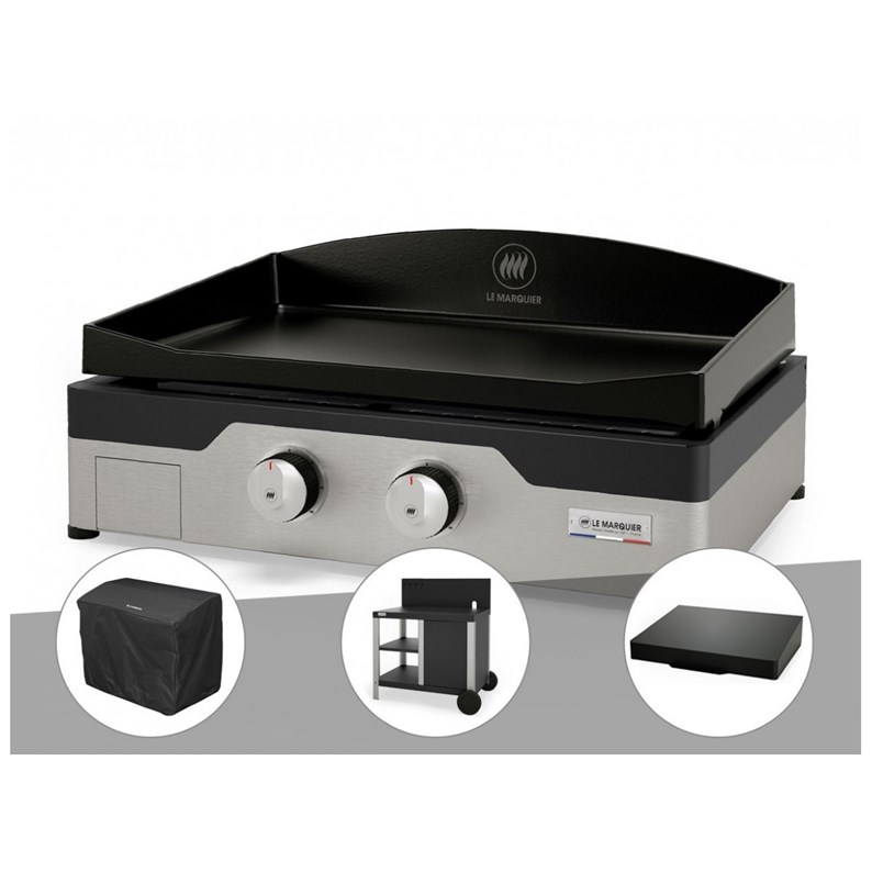 Plancha gaz signature allure 260 duo + housse de protection + chariot + couvercl