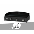 Fabriquée en acier avec revêtement époxy noir, elle est aussi solide que durable. Elle est équipée de nombreux atouts : allumage piezo électronique, bol récupérateur de graisses, pieds réglables, boutons antidérapants, et fonctionne au gaz butane ou propane