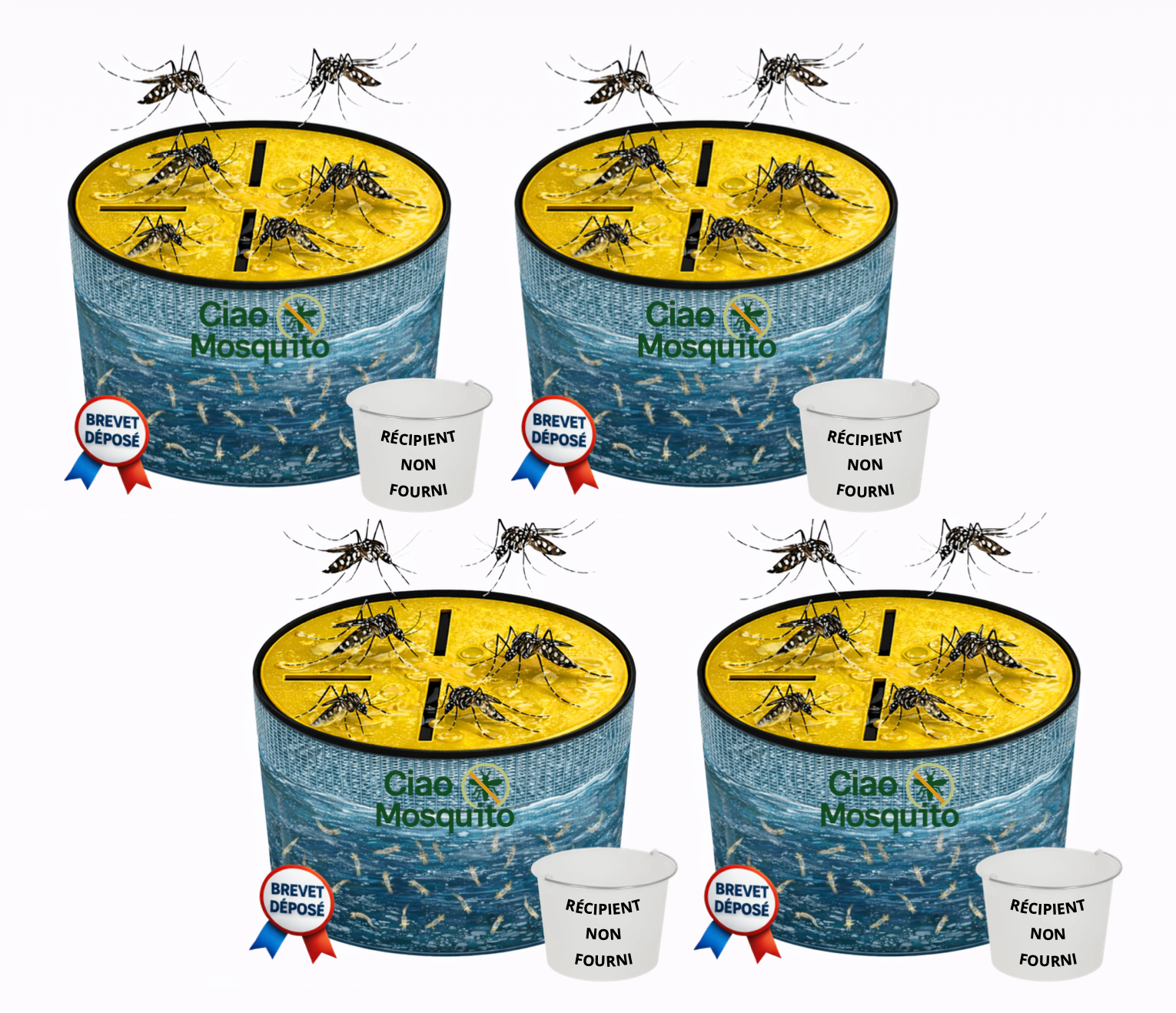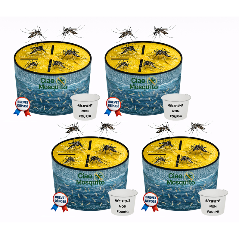 Ciao Mosquito – Kit anti moustique écologique et réutilisable, conçu pour être utilisé avec un récipient existant (seau, pot, bac…). Ce piège à moustiques tigres et larves fonctionne sans insecticide, sans produit toxique, sans électricité, et respecte l'environnement. Idéal pour une utilisation en intérieur (salon, cave, véranda…) comme en extérieur (jardin, balcon, terrasse, potager), il bloque le cycle de reproduction des moustiques à la source. Les moustiques femelles pondent dans l'eau stagnante. Le flotteur et le filet capturent œufs et larves, correspondant à leur transformation en moustiques adultes. Les disques jaunes permettent de piéger les moustiques adultes en cas de prolifération. Kit compatible avec tout contenant étanche et opaque (seau, pot de fleur, etc.). Simple à utiliser, sans odeur, sans danger pour les enfants et les animaux. INFORMATION IMPORTANTE SUR LA PRÉSENCE DE MOUSTIQUES Il est normal d’observer des moustiques qui tournent autour du piège rempli d’eau : il s’agit principalement de moustiques mâles, qui attendent l’arrivée des femelles pour l’accouplement. Les moustiques mâles ne piquent pas et ne pondent pas dans l’eau ; seules les femelles, responsables des piqûres, entrent en contact avec l’eau pour pondre.