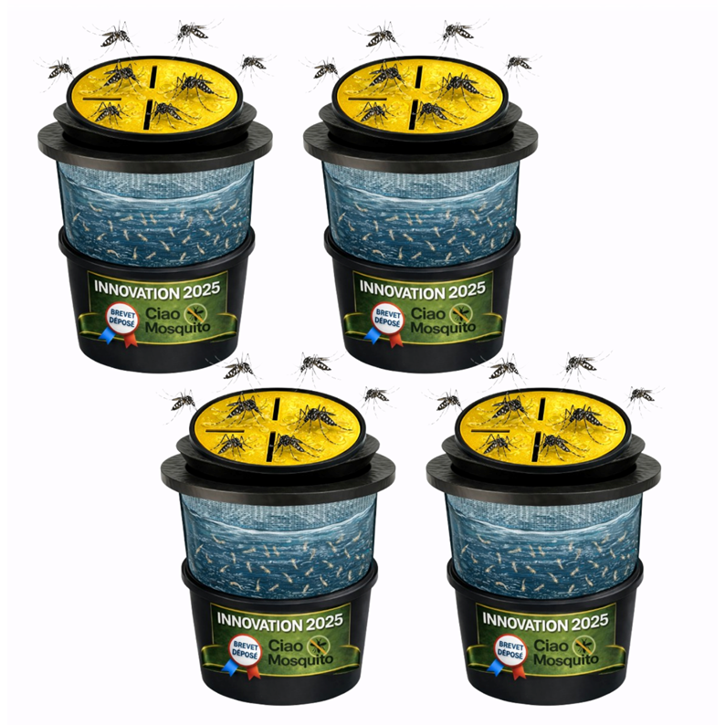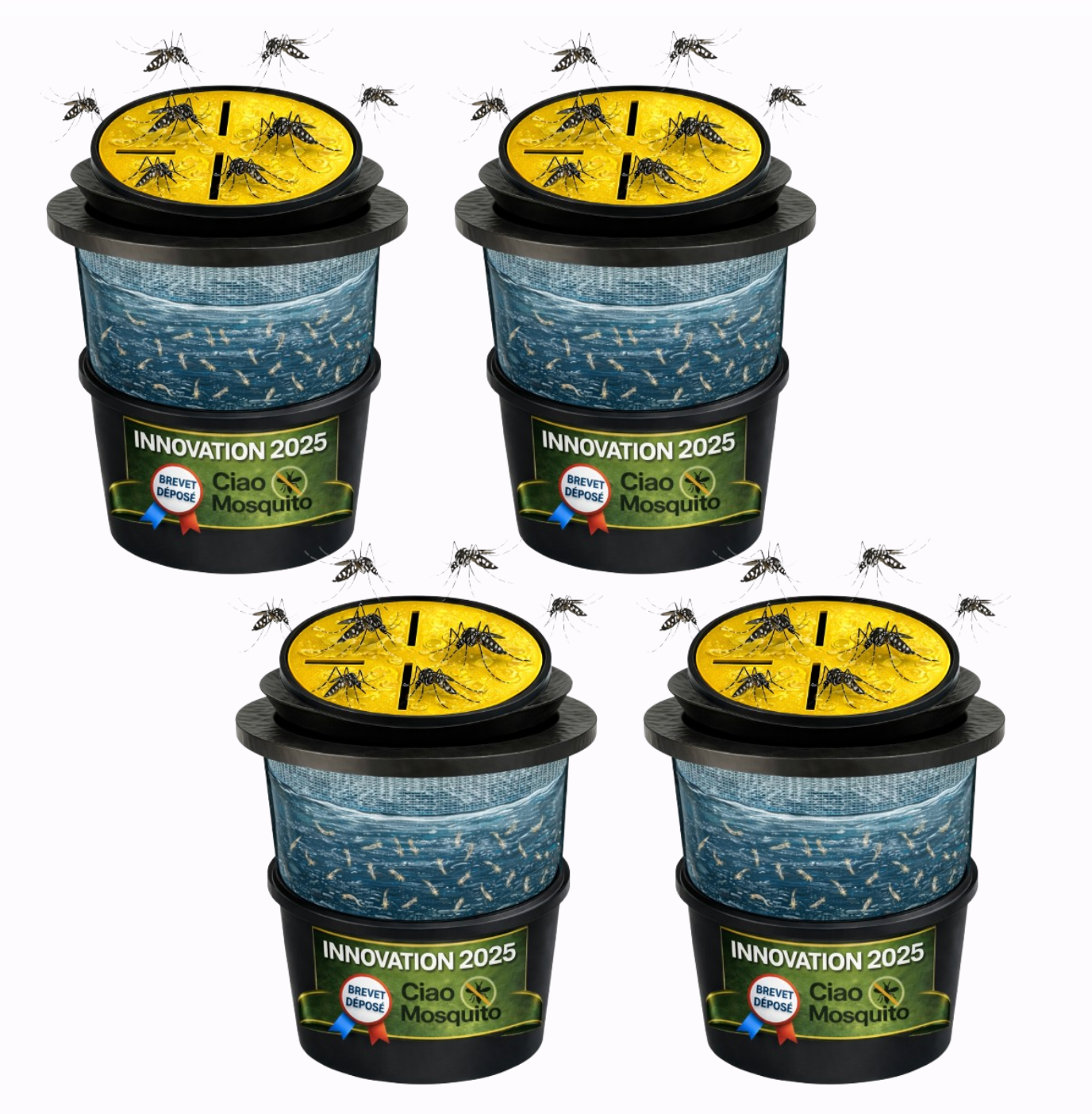 Ciao Mosquito – Piège écologique nouvelle génération avec récipient intégré Enfin un piège réellement efficace pour stopper les moustiques à la racine, sans aucun produit toxique. Ce kit prêt à l’emploi attire les moustiques femelles pour la ponte, puis empêche les larves de survivre dans l’eau, cassant ainsi leur cycle de reproduction. Aucun produit toxique : Sans électricité, sans UV, sans poison – idéal pour les jardins, balcons, potagers, serres, bassins et espaces publics. ?? Résultats visibles en 2 à 4 semaines Installez le piège dans une zone ombragée et humide, renouvelez l’eau si besoin. Le système agit progressivement pour réduire fortement les populations de moustiques tigres autour de chez vous.