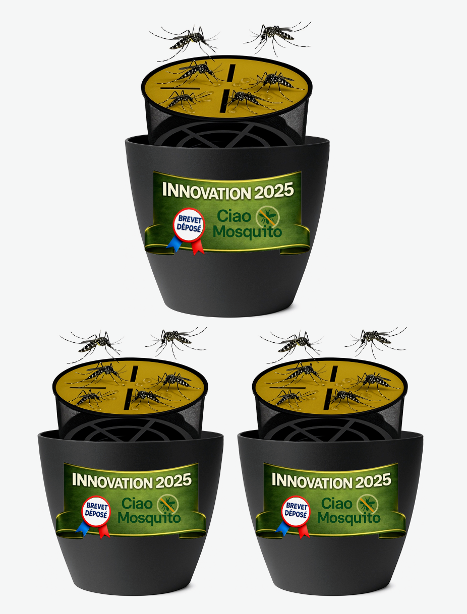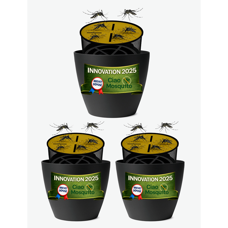 Ciao Mosquito – Le piège à moustiques écologique, réutilisable et sans insecticide, conçu en France pour vous protéger naturellement des moustiques tigres, larves et piqûres. Ciao Mosquito est une solution anti-moustique naturelle, sans produits chimiques, qui permet de réduire efficacement les moustiques dans les jardins, terrasses, balcons, cours, patios, zones agricoles, potagers, campings et autres zones extérieures. Ce piège écologique innovant attire les moustiques femelles à la recherche d’un point d’eau pour pondre. Grâce à un système passif ingénieux (eau stagnante + flotteur + filet), il interrompt le cycle de reproduction en capturant œufs et larves, sans polluer l’environnement. En cas de forte prolifération, l’autocollant jaune fourni piège également les moustiques adultes, sans odeur, sans produits toxiques, sans danger pour les enfants ou les animaux. Conçu et fabriqué par une marque française engagée, Ciao Mosquito agit là où les lampes UV, répulsifs, spirales anti-moustique, diffuseurs électriques, sprays insecticides et pièges CO2 échouent : à la racine du problème. Réduction des moustiques jusqu’à 80 % lorsqu’il est utilisé en continu et en plusieurs exemplaires dans une zone. Avantages clés du produit Piège à moustique écologique – Aucun produit chimique, zéro biocide, zéro pesticide, zéro rejet toxique Anti moustique jardin – Parfait pour balcon, terrasse, serre, véranda, parterre, potager Piège larves moustiques – Stoppe les larves dans l’eau avant leur transformation en moustique adulte Réutilisable et économique – Aucune recharge, aucun gaz, aucun appât, aucun branchement Installation facile – Remplir d’eau, poser le flotteur, le filet, ajouter l’autocollant si besoin Silencieux & inodore – Idéal pour une utilisation en toute saison, de jour comme de nuit Compatible moustique tigre – Spécialement conçu pour lutter contre Aedes albopictus (moustique vecteur de la dengue, Zika, chikungunya) Contenu du pack complet anti moustique naturel 1 récipient noir robuste 1 flotteur circulaire 1 filet anti-larves 2 autocollants jaunes anti moustique 1 notice explicative illustrée. INFORMATION IMPORTANTE SUR LA PRÉSENCE DE MOUSTIQUES Il est normal d’observer des moustiques qui tournent autour du piège rempli d’eau : il s’agit principalement de moustiques mâles, qui attendent l’arrivée des femelles pour l’accouplement. Les moustiques mâles ne piquent pas et ne pondent pas dans l’eau ; seules les femelles, responsables des piqûres, entrent en contact avec l’eau pour pondre.