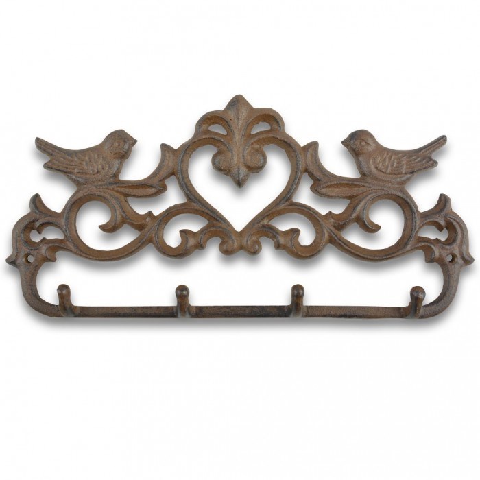 Très utile pour ranger les outils de jardinage, les accessoires pour le barbecue ou encore tablier et torchons dans la cuisine. Crochets mural décor oiseaux. Dimensions: 31 x 3,2 x H 14,9 cm.