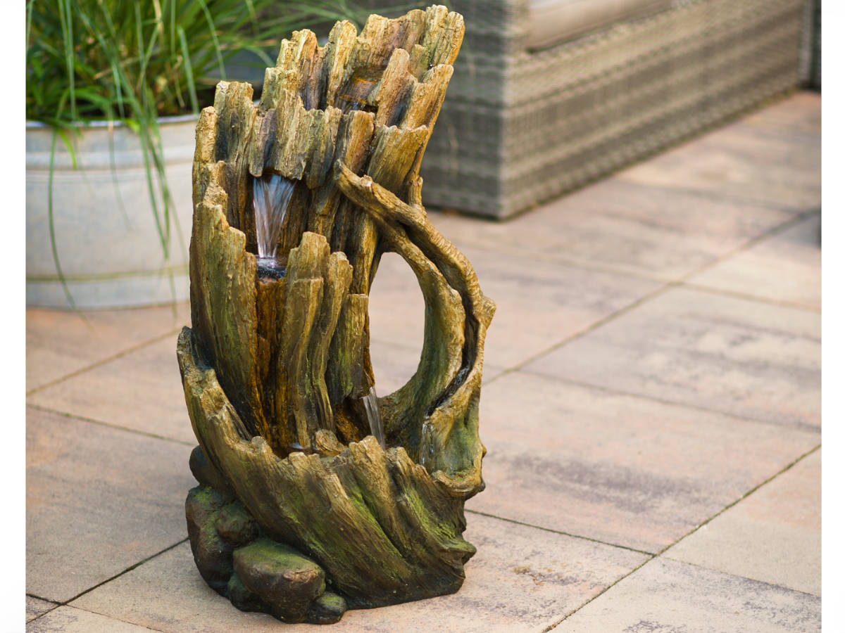 Fontaine de jardin alcamo tronc d'arbre avec chute d'eau et éclairage led - ubbi