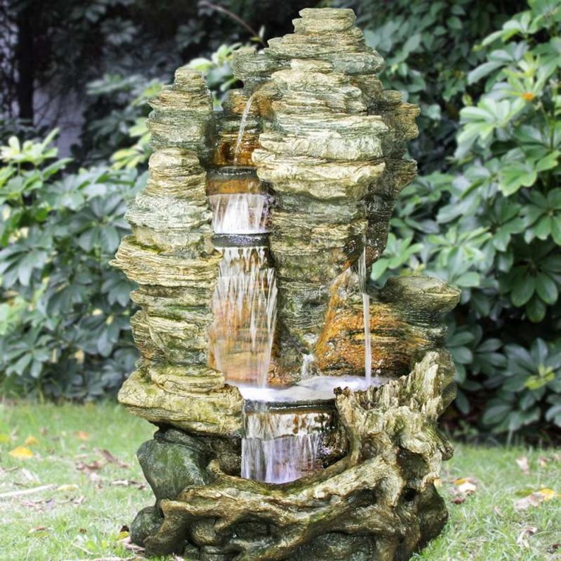 Matériau léger et résistant au temps, d'une installation facile muni de son propre réservoir d'eau et livré avec une pompe de grande capacité 6000 l/h pour un jeu d'eau puissant.