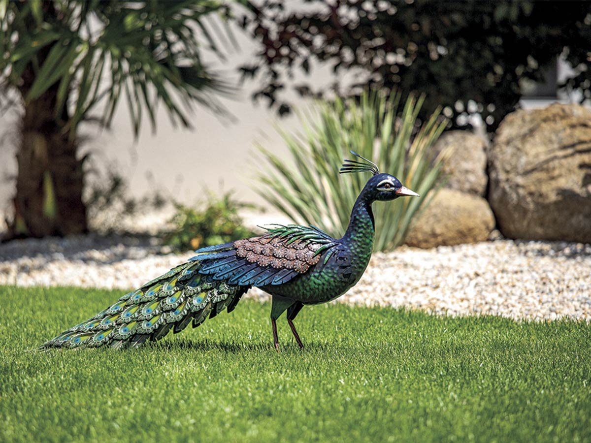 Le paon est facile à installer, il peut être placé sur une pelouse, sur un parterre de fleurs ou encore sur une terrasse. Il ne nécessite pas d'entretien particulier, un simple nettoyage avec un chiffon doux et humide suffit pour le garder en bon état.