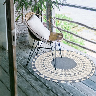Tapis rond d'extérieur, kilim reversible Ø240cm EX1 C bleu et blanc  En savoir plus