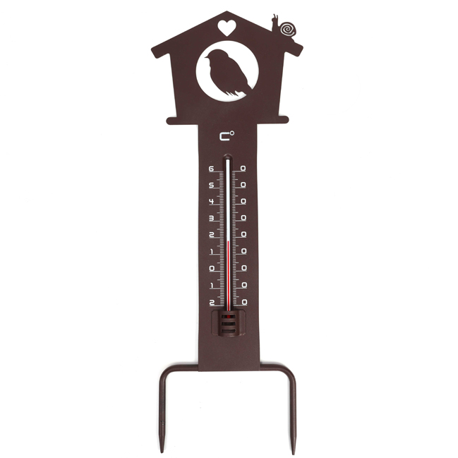 - Ce joli thermomètre en forme de nichoir est surmonté d'un adorable oiseau décoratif.