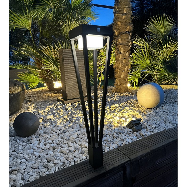 Borne extérieure solaire luxor avec détecteur de mouvements noir