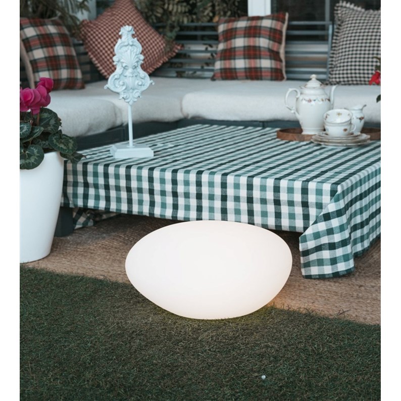 Avec ses lignes douces et son aspect minéral, le galet lumineux PETRA s’intègre parfaitement à tout type d’extérieur : terrasse, bord de piscine ou jardin paysager. Il diffuse une lumière personnalisable grâce à son éclairage LED RGB + blanc chaud ou froid, tout en fonctionnant de manière autonome grâce à son panneau solaire et sa batterie rechargeable. Le tout, contrôlable facilement grâce à la télécommande incluse.