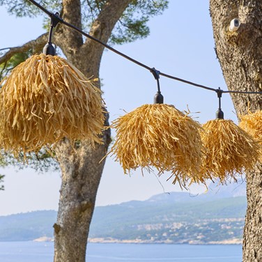 La guirlande Frufru Light se distingue par ses abat-jours en jute de 30 cm, apportant un design bohème et exotique. Ce modèle de 6 mètres, équipé de 7 ampoules LED à filament blanc chaud (700 Lumens), crée une ambiance festive et vintage. Son système d'extension permet de raccorder jusqu'à 10 guirlandes sur une seule prise 220V, offrant une solution flexible pour illuminer de grandes surfaces. Certifiée IP64 et résistante aux UV, elle convient pour un usage en intérieur comme en extérieur. L'installation est facilitée par des crochets intégrés et un espacement de 60 cm entre chaque source lumineuse. Pour garantir sa longévité, il est conseillé de protéger les fibres naturelles de l'humidité et de la pluie en fin de saison. Parfaite pour une terrasse ou un salon, elle combine authenticité et performance technique. Cette guirlande s'adapte à toutes les situations avec un charme chic et naturel.