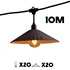 Ce kit de 2 guirlandes Vinty Light Connectable offre une solution d'éclairage haut de gamme de 10 metres, alliant design vintage et industriel. Il comprend 20 ampoules LED a filament blanc chaud avec abat-jours en acier, degageant une intensite totale de 2000 lumens. Son atout majeur est sa fonction raccordable, permettant de relier plusieurs kits pour atteindre une longueur continue de 102 metres, idéal pour les grands evenements, hotels ou vastes terrasses. Concue pour la durabilite, cette solution beneficie d'une protection IP64 contre les eclaboussures et d'une resistance aux UV pour un usage securise en intérieur comme en extérieur. L installation est simplifiee par des crochets integres, un espacement de 40 cm entre les ampoules et un cable de 2,15 metres avant la premiere source. Ce kit combine performance lumineuse, robustesse et esthetique guinguette chic pour transformer vos espaces avec une ambiance chaleureuse et une modularite exceptionnelle.