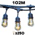 Ce kit de 25 guirlandes MAFY LIGHT CONNECTABLE est la solution professionnelle ultime pour des installations monumentales de 102 metres. Equipe de 250 ampoules LED a filament remplacables (E27), il diffuse une lumiere blanc chaud d'une puissance extreme de 25000 lumens. Son design retro et vintage est idéal pour les grands evenements, les hotels ou les vastes jardins. Concue pour un usage intensif, cette solution est protegee contre les eclaboussures (IP64) et resiste aux UV, garantissant une durabilite optimale en intérieur comme en extérieur. L atout majeur de ce kit est sa connectivite native permettant de relier toutes les guirlandes sur une seule prise secteur 220V, couvrant ainsi des surfaces immenses sans multiplier les branchements. L installation est facilitee par des crochets de suspension pratiques et un cable d'alimentation de 2,15 metres. Ce kit combine une performance lumineuse hors norme, une robustesse professionnelle et une esthetique elegante et durable.