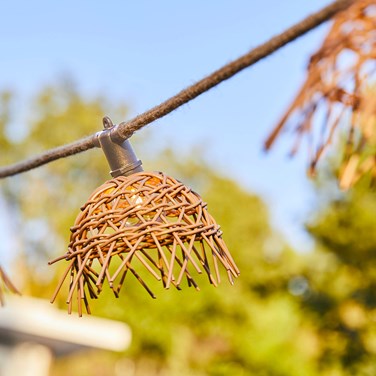 - Guirlande lumineuse hybride exotique : MINI HAWAI LIGHT HYBRID est la version compacte et hybride de la célèbre Hawai Light. Ses 10 abat-jour en polyrotin offrent un effet exotique et naturel type paille, sublimé par un éclairage LED blanc chaud pour une ambiance chaleureuse et festive. Longueur totale : 8 m.