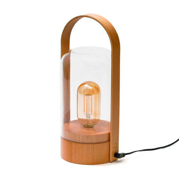 - Avec son socle en bois de hêtre et son dôme en verre soufflé à la main, elle offre un design sobre et élégant qui s'intègre parfaitement dans n'importe quelle pièce.