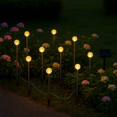 Illuminez votre jardin avec les 10 mini-boules solaires à piquer Lolly diffusant une lumière blanc chaud scintillante. Chaque unité de 40 cm de hauteur est reliée à un panneau solaire central, permettant un fonctionnement autonome sans aucun raccordement électrique fixe. Leur batterie assure une autonomie technique de 8 heures après 4 à 6 heures de charge solaire quotidienne chaque jour. Les balises s'activent automatiquement dès la nuit tombée pour créer une ambiance féerique le long de vos allées. Certifiées IP44, elles sont protégées contre les intempéries et les rayons UV saison après saison. L'ensemble mesure 5 mètres de longueur totale pour structurer vos massifs avec élégance. Ce produit évite les allégations globalisantes interdites comme écoresponsable pour se concentrer sur des performances réelles et vérifiables. L'information est fondée sur des faits physiques.