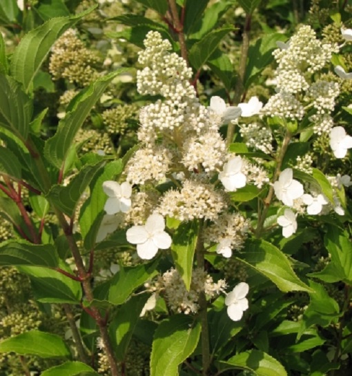 L'Hortensia paniculé 'Kyushu' est une variété d'Hydrangea Paniculata qui séduit instantanément par son abondante floraison et son port élégant. Ce cultivar spécifique produit de magnifiques inflorescences en forme de grands cônes, un mélange harmonieux de fleurs fertiles et de fleurs stériles. Dotées de longs pétioles et de larges pétales, les fleurs de l'Hortensia 'Kyushu' sont un véritable spectacle pour les yeux.