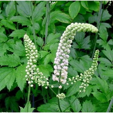 Enrichissez votre jardin avec la beauté élégante de l'Actaea (Cimicifuga) racemosa, mieux connue sous le nom de fougère argentée. Cette plante vivace, avec ses fleurs blanches remarquables, est un ajout magnifique à tout jardin et fleurit d'août à septembre.