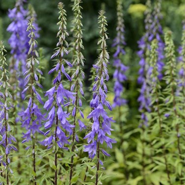 Ses épis de fleurs, d'un bleu violacé envoûtant, s'épanouissent pour créer un véritable spectacle visuel dans votre jardin. Toutefois, cette belle stature nécessite un certain soutien : un tuteurage est indispensable pour éviter que ses longues tiges ne succombent sous l'effet du vent. La campanule pyramidale se développe idéalement en tant que plante bisannuelle plutôt que vivace, demandant donc un minimum de soins de renouvellement.