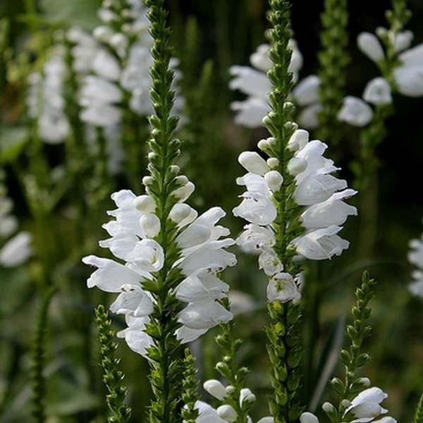 De juillet à septembre, la Physostegia virginiana 'Summer Snow' se pare d'une floraison éblouissante. Ses petites fleurs d'un blanc pur rappellent la neige fraîche et sont disposées en épillets qui peuvent atteindre jusqu'à 20 cm de longueur. Ces floraisons tubuleuses forment des cascades florales qui captivent le regard et embaument le jardin de leur présence discrète.