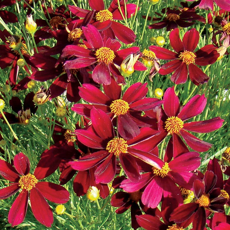 Découvrez Coreopsis hybrida 'Red Satin', une magnifique variété de coréopsis aux fleurs rouges  En savoir plus