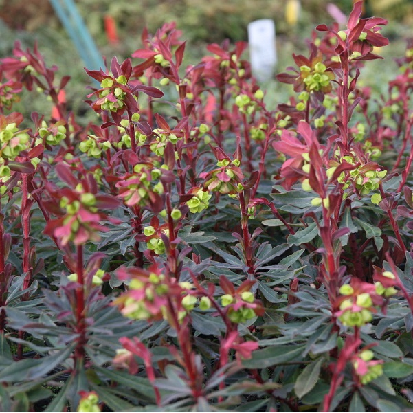 6 x euphorbe des bois - euphorbia amygdaloides 'purpurea' - godet 9x9 cm