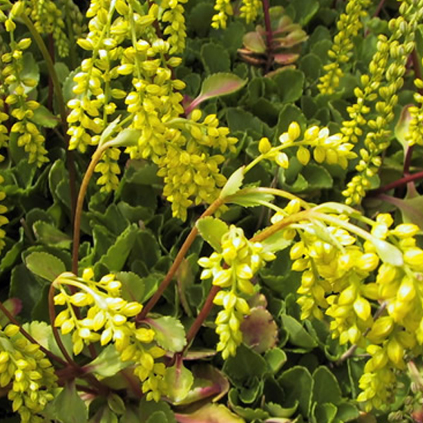 Découvrez le Chiastophyllum oppositifolium, communément appelé Goutte d'or, une vivace robuste qui transformera votre espace extérieur en une oasis verdoyante. Cette plante est particulièrement appréciée pour ses feuilles charnues et ovales qui forment un tapis dense et compact, apportant une texture riche et un feuillage persistant tout au long de l'année.