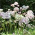 Découvrez la Grande Astrance 'Buckland', ou Astrantia major 'Buckland', une vivace charmante au feuillage caduc et buissonnant. Les feuilles, de couleur vert-moyen, sont joliment palmées et confèrent à la plante une structure élégante. De juin à septembre, elle se pare de délicates fleurs rose-vert, mises en valeur par des bractées blanches lumineuses. Parfaitement adaptée pour s'épanouir dans un écrin de lumière solaire filtrée ou dans les douces ombres de votre jardin, l'Astrantia 'Buckland' préfère les sols bien drainés et humides.