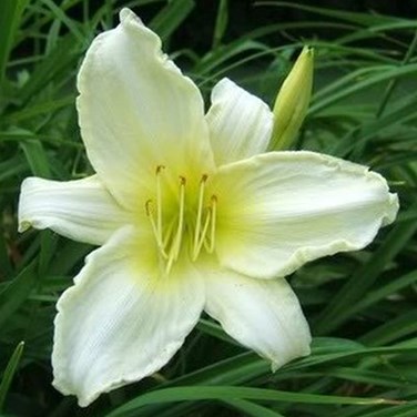Découvrez l'éclat envoûtant de l'Hemerocallis 'Ice Carnival', connu en tant que Lis d'un jour ou hémérocalle 'Ice Carnival'. Cette plante ornementale capture l'essence de la grâce avec ses grandes fleurs d'un blanc pur rehaussé de touches jaune et d'une gorge vert pâle. Les fleurs, délicieusement parfumées, sauront attirer le regard, atteignant un diamètre spectaculaire d'environ 15 cm.