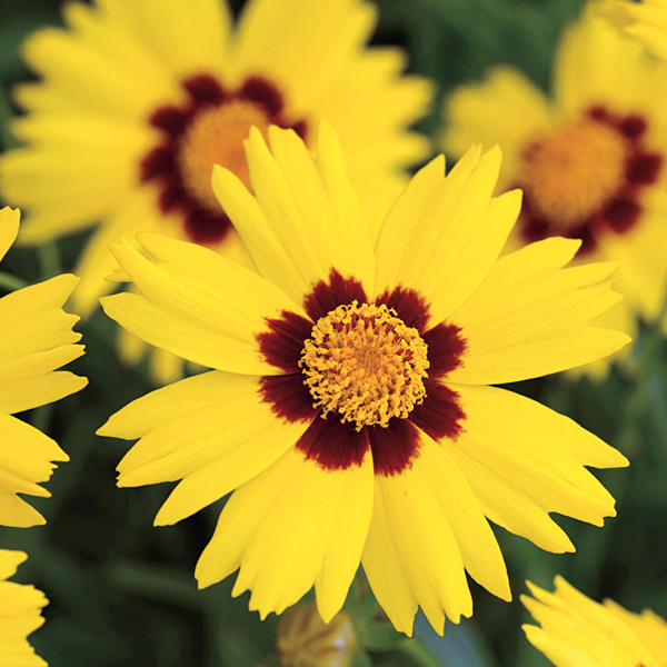 Découvrez l'éclatante Coreopsis lanceolata 'Sterntaler', plus communément appelée Œil de jeune fille 'Sterntaler'. Cette charmante variété se distingue par ses fleurs semi-doubles lumineuses, arborant un jaune éclatant couronné d'un centre bordeaux captivant. Adaptable et résiliente, l'œil de jeune fille 'Sterntaler' est la plante idéale pour illuminer votre jardin.