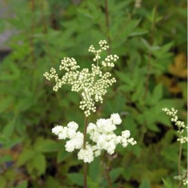La Filipendula ulmaria 'Plena', plus communément appelée Reine des près, est une plante vivace qui charme par sa stature élégante et ses floraisons généreuses. C'est une variété de fausse spirée 'Plena', reconnaissable à ses tiges dressées robustes, qui portent des feuilles d'un vert intense avec un revers blanc duveteux, ainsi que des gracieuses fleurs doubles blanches. Ces dernières sont regroupées en cymes corymbiflores denses, offrant une présence visuelle remarquable ainsi qu'un parfum enivrant et agréable.