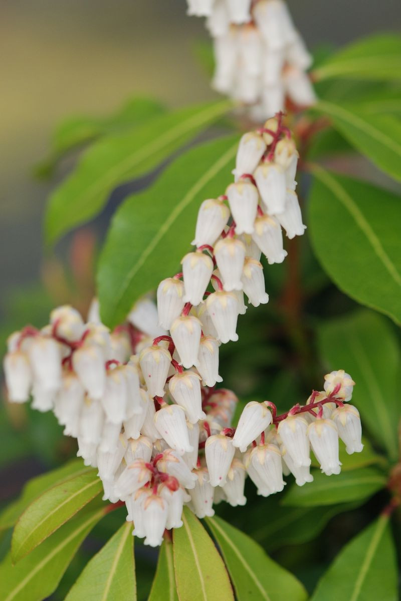Cette variété de Pieris japonica se démarque par ses jeunes pousses rouge pourpré qui deviennent rouge carmin avant de virer au vert foncé. Très vigoureux, cet arbuste fleurit en clochettes blanches.
