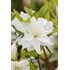 Cette azalée est certes de petite taille mais elle sait affirmer sa présence par sa généreuse floraison printanière. Haute de 60 cm et large de 80 cm, cette azalée forme un petit buisson naturellement arrondi, au port légèrement étalé. Le feuillage ovale lancéolé se distingue par son fini satiné et sa jolie couleur vert clair. En avril et en mai, des fleurs en trompette éclosent en masse au point de presque dissimuler le feuillage. D'un blanc très pur, ces fleurs sont regroupées en grappes abondantes.