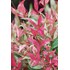 Les bambous sacrés sont toujours un émerveillement pour les yeux. Cette variété n'échappe pas à la règle avec un feuillage très coloré et évolutif au fil des saisons. Persistantes, les feuilles lancéolées arborent un magnifique vert bleuté irrégulièrement maculé de blanc crème. Au printemps, il se couvre de jeunes pousses teintées de rose à rouge vif, particulièrement attractives et lumineuses. Ces jeunes pousses gardent cette couleur rose à rouge tout au long de l'été.