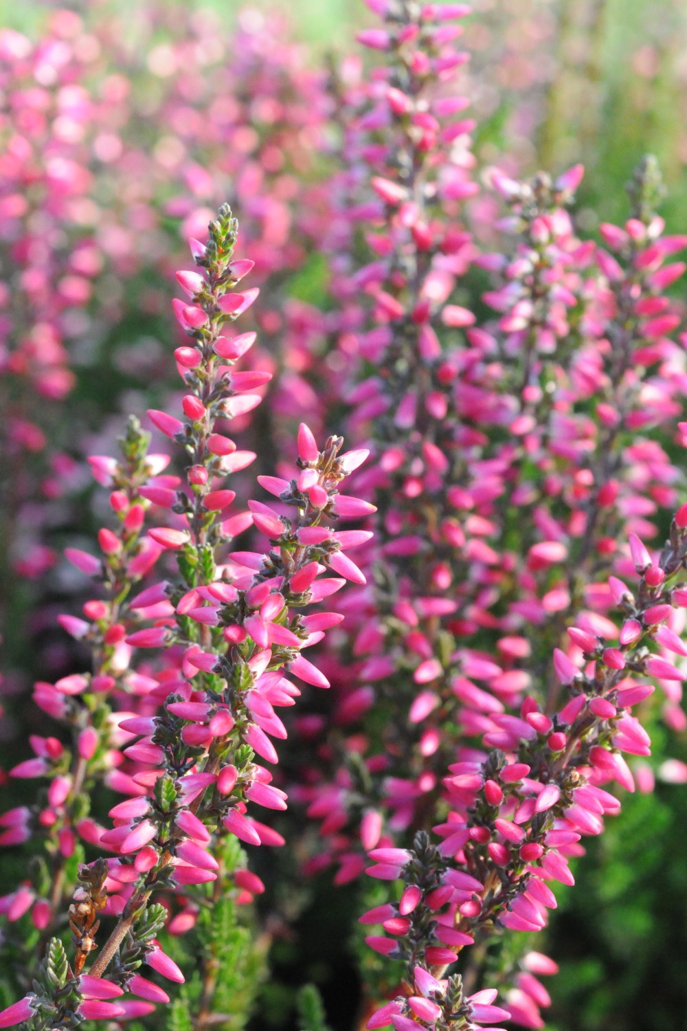 Superbe bruyère d'été compacte, d'un magnifique rouge de septembre à décembre avec de petites fleurs en boutons.